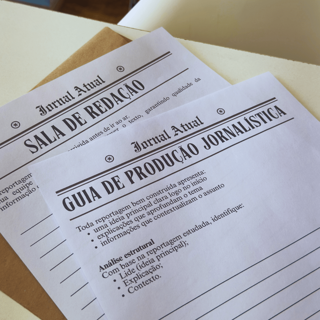 A atividade é estruturada como um escape room pedagógico, no qual os alunos avançam por etapas até concluir uma missão final: revisar e reescrever uma reportagem antes da publicação.