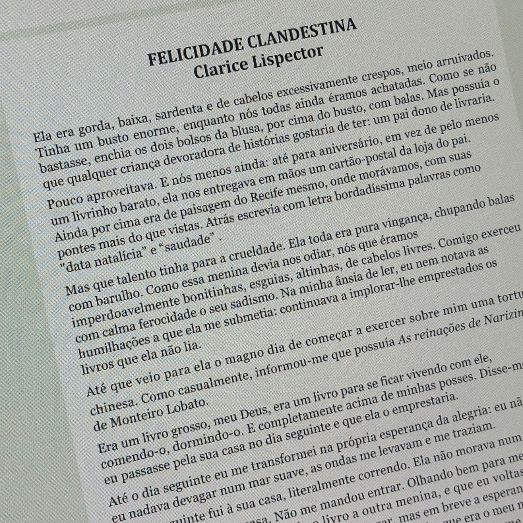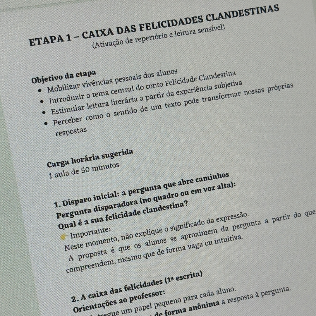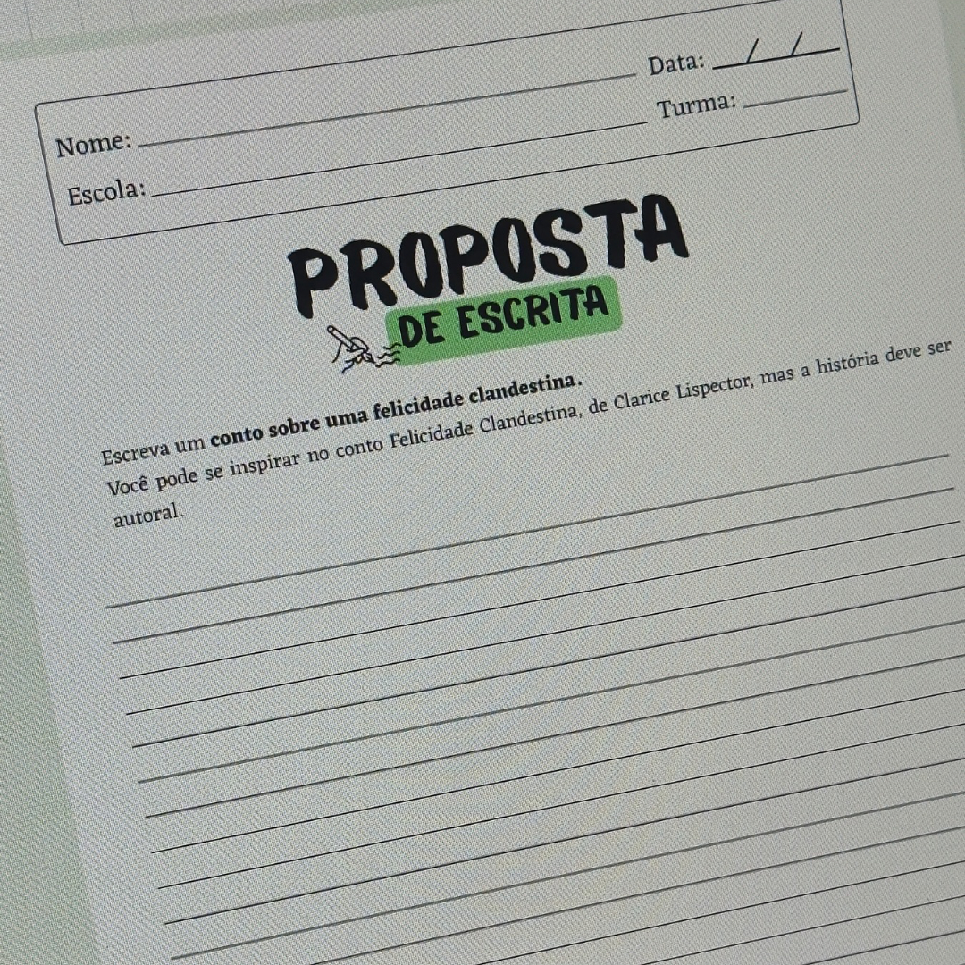 A proposta parte da leitura do conto Felicidade Clandestina, de Clarice Lispector, e conduz os alunos por um percurso completo que inclui: