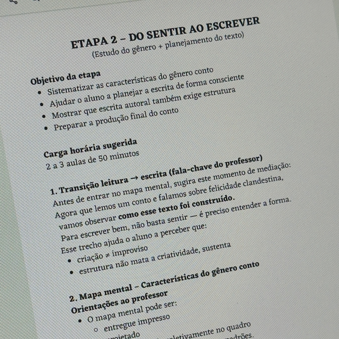 Ideal para professores que buscam uma sequência didática completa sobre conto, com foco em autoria, organização textual e desenvolvimento da escrita.