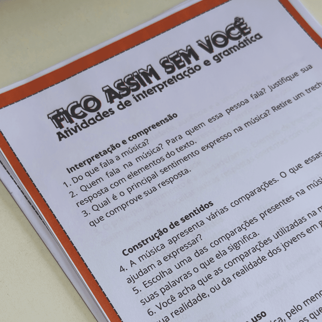 Este material foi desenvolvido para trabalhar substantivos de forma contextualizada, leve e significativa, a partir da música “Fico assim sem você”.